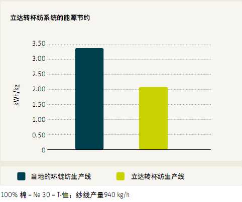 每公斤紗線(xiàn)的生產(chǎn)成本至關(guān)重要。采用立達(dá)轉(zhuǎn)杯紡設(shè)備的紡紗廠(chǎng)的特點(diǎn)就是機(jī)器數(shù)量更少、產(chǎn)量最高,能耗和空間需求降低、操作和維護(hù)人員減少。