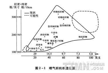 噴氣織機織造范圍見圖2—1。噴氣織機織物分類見表2—1。