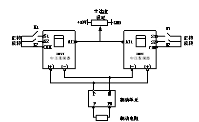 針對煤礦防爆裝置對兩臺變頻器的同步性要求精度高,設計方案如下: