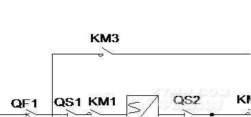 變頻運行:QF1、KM1、KM2、KM6吸合,KM3、KM6、KM5、KM7斷開,電機M1變頻運行。