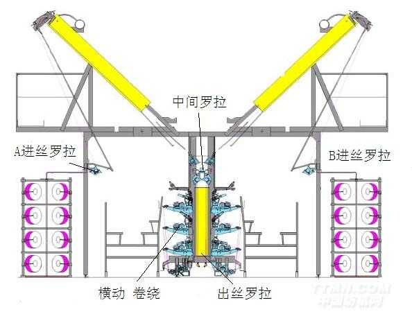 電氣傳動主要由A、B進絲羅拉、中間羅拉、出絲羅拉、橫動、卷繞等傳動部分組成,此外還有上油傳動部分。