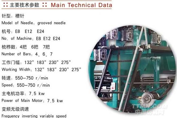 HY290型高速漁網機采用油浸式凸輪連桿機構,使用槽針并配備了送經和電子卷取。用于編織各種無結漁網、經編網類織物。