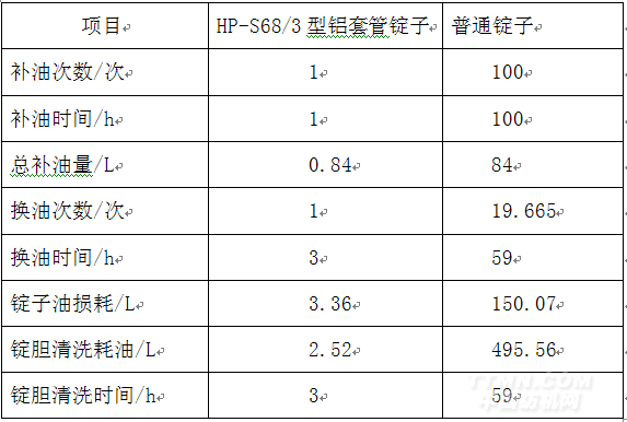 表1 HP-S68/3型鋁套管錠子與普通錠子油耗對比