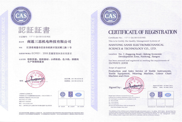 2011年3月3日,我公司經過認證公司的重新考核和復審,順利的獲得了ISO9001:2008質量管理體系的認證證書。