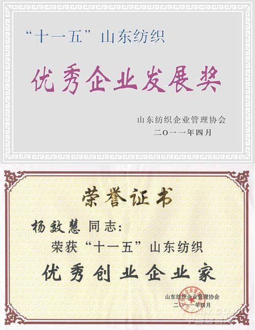 公司被授予十一五山東紡織優(yōu)秀企業(yè)發(fā)展獎(jiǎng)
