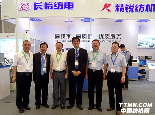 在長嶺公司總經理薛冬泉的引導與介紹下,中國紡織工業聯合會會長王天凱,中國紡織工業聯合會副會長張延愷,中國紡織機械器材工業協會理事長王樹田、副理事長祝憲民,中國紡織報社副社長徐國營,中國工程院院士姚穆,儀器組評審組等領導和專家,對長嶺紡電現場展示情況進行了詳細參觀與了解,同時對長嶺公司近期的發展與企業近況也進行了慰問與了解。