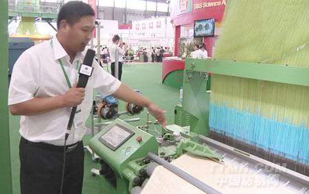 ??偅耗壳霸谏虾U箷且哉追桨竵碚钩?,現(xiàn)在這個就是噴氣織機的整套制造,噴氣織機主要用在家紡、裝飾布等領(lǐng)域,我們這款設(shè)備融合了日本和歐洲的噴氣織機的特點。這款設(shè)備有三大特點:第一是整體的鏟板設(shè)計,第二是六連桿打緯的方式,第三是便于調(diào)節(jié)噴嘴的氣壓。然后新型的電子提花機具有免維護(hù)、更高速、更節(jié)能,為客戶提供了成本上的節(jié)省,織造成本和維護(hù)成本。