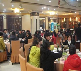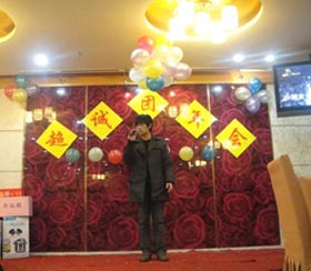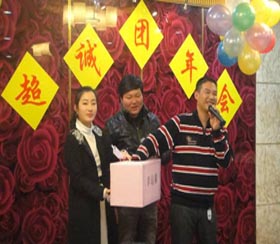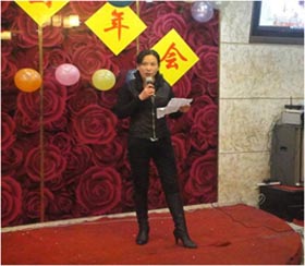 在這次團年會上,首先公司副總經理兼銷售部總監宋萍女士作了致詞,而且還作了上年的工作總結及11年的五項重點項目布署,讓大家勢氣大增,精神鼓舞,讓大家有了更好的規劃與奮斗目標。緊接著,公司董事長宋宗團先生上臺發表了精彩的祝酒詞。揭開了2011年團年晚會的精彩表演。