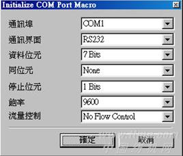 (2)INITCOM。INITCOM → COMPORT的起始化,用來開啟通訊端口,并且設(shè)定通訊協(xié)議,參見圖2--圖9。