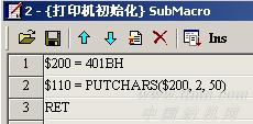 (5)Sub Macro 2 為打印機(jī)初始化,代碼如下: