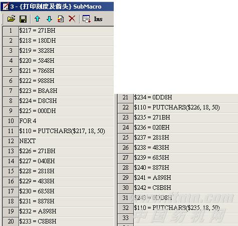 (6)Sub Macro 3為打印刻度及左箭頭,如下代碼: