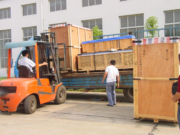 圖為9月上旬,天門紡織機械有限公司生產的一批棉紡并條機集裝上車,運往棉紡企業。