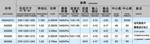 圖三:傳動減速器技術參數
