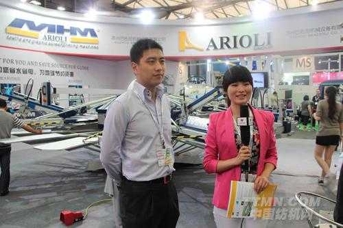 2013年上海國際紡機展蘇州巴佐尼推出了一款S型的Xtrem型號的印花機,據蘇州巴佐尼總經理助理李昂介紹,它是蘇州巴佐尼最新的一款產品,它主要是加入了蘇州巴佐尼所有數碼的一個控制系統。S型的Xtrem型號的印花機主要有兩種功能,一是T恤的印花,還有一個是彩片的印花。有兩個是工作臺位,一個是放T恤或者彩片的工作臺位,還有一個是印完了一圈以后收下來,然后每一個板,它是有一套色,它是通過一個絲網進行印花。絲網是設計好了以后,把它織成一種圖案的絲網,每一個絲網有一個顏色。,一個顏色當它刷過以后,會有一個烘干的一個過程,這個需要根據客戶不同的工藝來進行調整,因為像蘇州巴佐尼現在所有的刮頭都是可調節的,如果把它打起來把這個刮刀去掉,就可以在上面加裝一個烘干機,也可以為有特殊需要的客戶專門定制可以活動的架子,可以把整個工作臺打起來,把它變成一個人工裝卸區域。