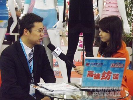(圖為寧波慈星紡織的王總在接受紡機網記者采訪 中國紡機網 TTMN.COM攝)