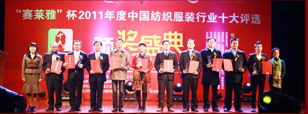 2011年11月24日,由知名電子商務(wù)網(wǎng)絡(luò)服務(wù)商慧聰網(wǎng)所主辦的“賽萊雅”杯中國(guó)新勢(shì)力-2011年度紡織、服裝行業(yè)十大風(fēng)云人物在中國(guó)北京釣魚(yú)臺(tái)國(guó)賓館隆重舉行。中國(guó)電子商務(wù)協(xié)會(huì)、中國(guó)百貨商業(yè)協(xié)會(huì)、北京服裝紡織行業(yè)協(xié)會(huì)、北京電子商務(wù)協(xié)會(huì)、中國(guó)紡織品進(jìn)出口商會(huì)等眾多領(lǐng)導(dǎo)出席了此次頒獎(jiǎng)盛典,新華網(wǎng)、千龍網(wǎng)、中國(guó)加盟網(wǎng)、紡織服裝周刊、中國(guó)服飾雜志、服裝界等數(shù)十家國(guó)內(nèi)行業(yè)權(quán)威媒體也全程參與了此次盛會(huì)。