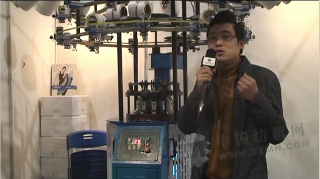 張經理:我們是寧波圣博小圓機紡織機械有限公司,引進了三環集團為我們投資的,我們是在2012年成立的廠家,我們這臺機器各方面是不錯的,因為引進了三環集團的技術力量,做得也比較細膩,也比較全面,主要是針對現在時下比較流行的打底褲。