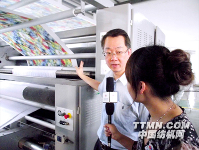 陳董:剛剛我們看到的是將圖案印刷在紙上,現(xiàn)在需要做的就是將印刷在紙上的圖案再轉(zhuǎn)移到需要印染的面料上來(lái)。