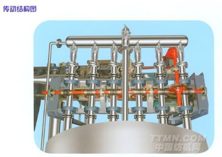 本機采用新型堰流式三角噴管。染色時。線帶浮起后形成點接觸,與管身摩擦力小,可防止線帶表面受損,采用蝸輪蝸桿傳動,翻轉三角噴管,性能可靠,翻轉平穩,不宜產生絞線帶現象。