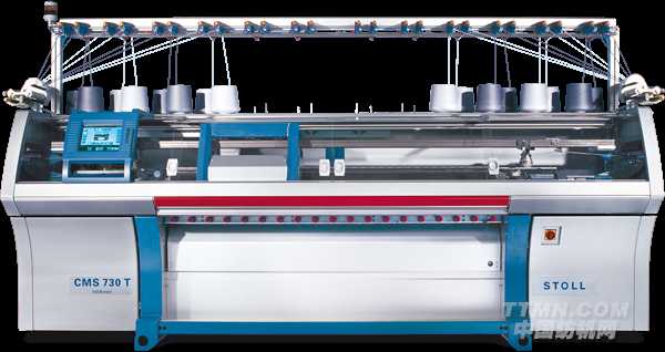 CMS 730 T織可穿配備有輔助針床,三系統,工作寬度72英吋/183厘米,機號E6.2 到E 7.2。 在全選針工藝下可編織12到14針的平針無縫織物。結合Stoll-多針距技術?,可以實現全選針時細針距區域和1隔1選針時的粗針距區域之間的完美組 合。粗針距的無縫織物,如E7 和E8,可在1隔1選針工藝下輕松實現。