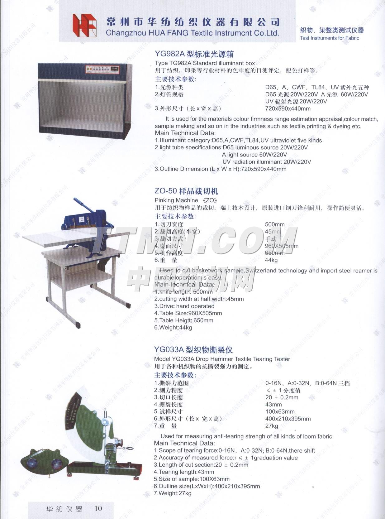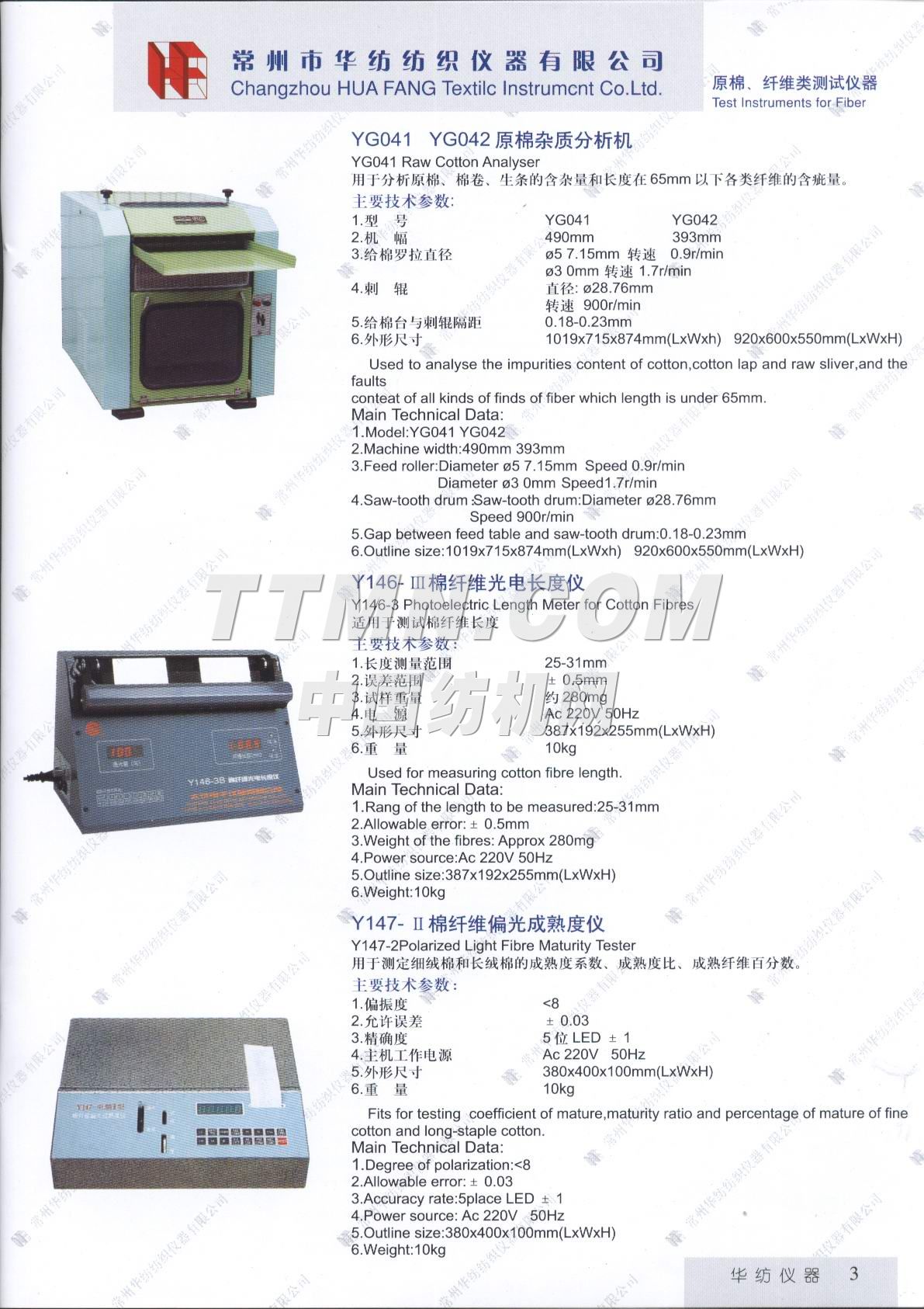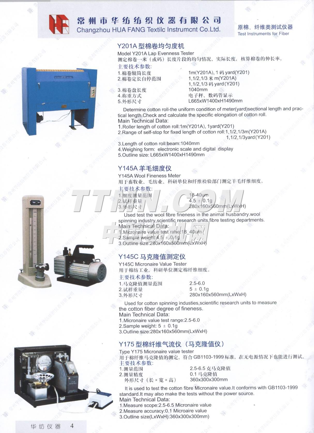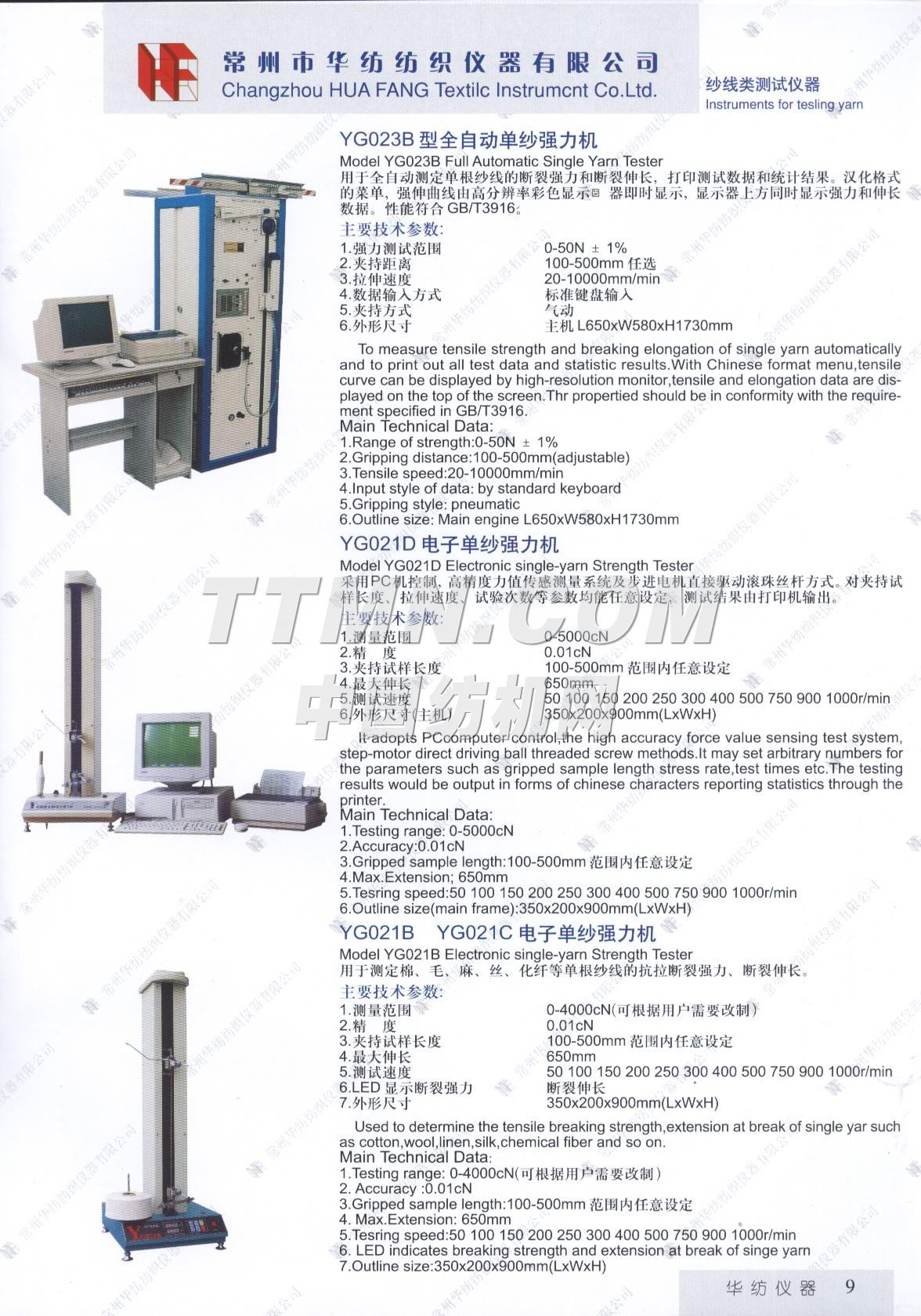 常州市華紡紡織儀器有限公司。它是生產與銷售紡織儀器的專業廠家。主要產品有Y802N、Y101D、YG747系列恒溫烤箱,YG021(A、B、D)、YG026D、YG008D、YG001D等系列電子式強力機,YG321、Y145C、Y331A、YG982等系列纖維紗線、印染的專業測試儀器。產品質量穩定,可靠,所測數據能自動顯示,并打印輸出。公司宗旨: ● 產品更精致, ● 服務更周到, ● 做更好的產品,滿足您的要求。 ...