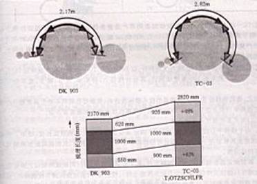 圖1.Tc-03梳棉機(jī)錫林中心位置提高20厘米后,梳理面積及梳理弧增加