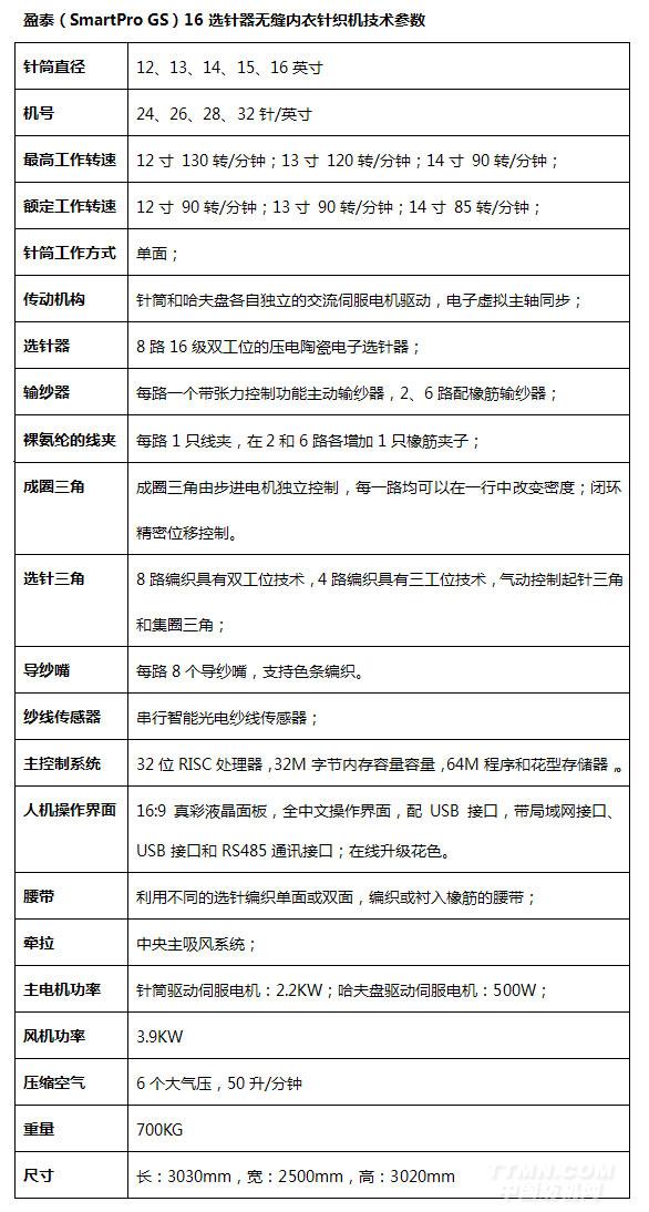 適宜多色彩、多組織的盈泰(SmartPro GS)16選針器無縫內衣針織機