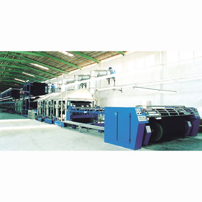 經軸退卷 → 引紗 → 煮煉(一組) → 水洗(二組)→ 染色氧化(七組) → 套染(一組) → 水洗(三組) → 色紗烘干(10只φ800mm烘筒) → 儲紗架(90mm) → 上漿 → 漿紗烘干(12只 φ800mm烘筒)→ 卷繞成織軸