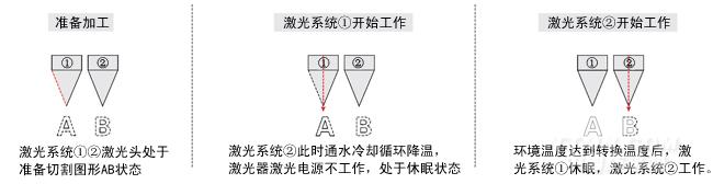 當①②激光系統單獨出現鼓掌時,只選用其中一個系統繼續工作,也絲毫不影響加工進度,激光機故障率因此大幅降低。