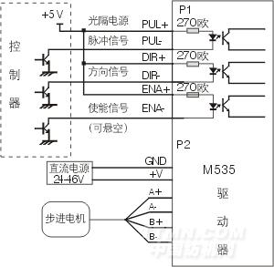 脈沖信號:單脈沖控制方式時為脈沖控制信號,此時脈沖上升有效;雙脈沖控制方式時為正轉脈沖信號,脈沖上升沿有效。為了可靠響應,脈沖的低電平時間應大于3μs。