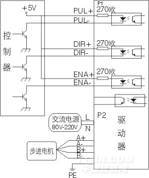 脈沖信號:單脈沖控制方式時為脈沖控制信號,此時脈沖上升沿有效(差分和共陽極接法時);