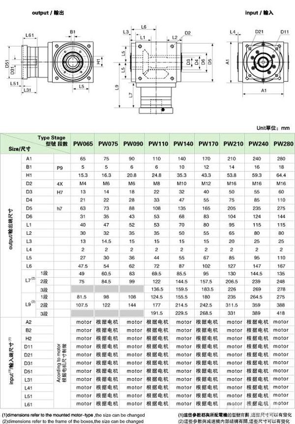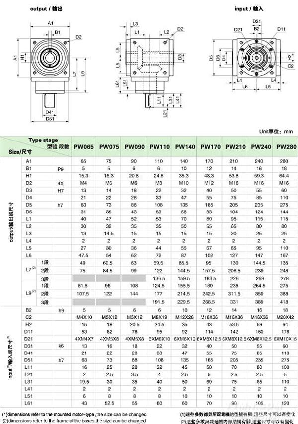 PW-OP1輸入軸型外形安裝尺寸