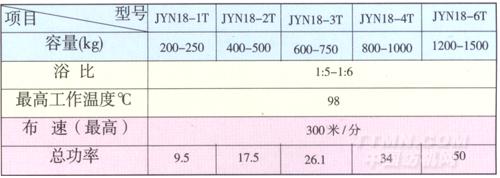 該機具有容布量大、浴比低、布速快、適應性強、占地面積小,節水、節電,操作簡便可靠。主要適用于各種厚薄純棉織物的煮、染、漂洗??椢镌谔幦具^程中始終處于松馳狀態,是一種低張力大容量,并能獲得優良染色效果的新型染整設備。