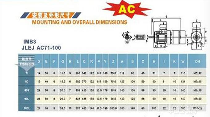 AC制動電動機安裝方式為:B5標準法蘭; B14小法蘭; B3臥式電機寬電壓:(220|380V;240|415V;260|440V;280|480V)寬頻率:50|60HZ其特點是:低噪音、小振動其絕緣等級為F級絕緣,可耐155℃高溫 ;其防護等級為IP55