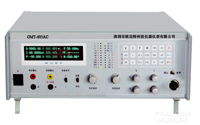 OMT-605AC型適用于檢定、校驗各種0.5級交流電壓、電流、頻率、相位、功率、功率因數表。亦可作為高穩定度測試電源使用,配合高等級標準表,校對0.2級以上交流電流、電壓、功率表。配用鉗形表校驗線圈(選購件),可校驗1級以下交流鉗形電流表(0~1000A)