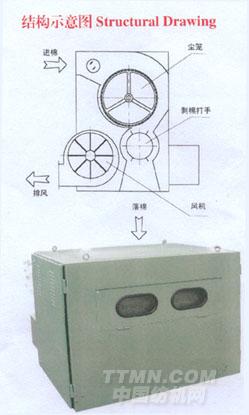 主要用于棉紡廠的開清棉工序,利用風機產生的氣流作用,將原棉或化纖凝聚在網眼塵籠的表面,除去棉流中的部分短絨或細小雜質,再通過剝棉打手的剝取,使得原棉和化纖輸入下一臺機臺,對原料進行繼續加工。本機還可以應用于其他各種需要輸送或轉移原料的場合。