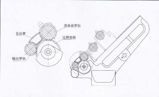 輸出羅拉安裝在異型管內,帶齒前羅拉輸出的動力通過過橋齒輪傳遞給輸出羅拉。