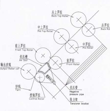CFJ型緊密紡裝置牽伸示意圖