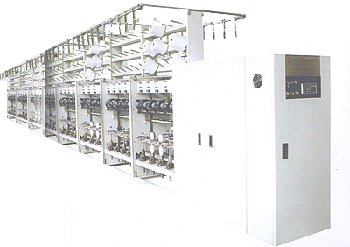 本機是包覆絲機的前道設備,可把不同規格的原料筒子絡繞,再多股并入捻合成包覆絲機上用的平行筒子,能減少包覆絲機的斷頭,以提高效率。