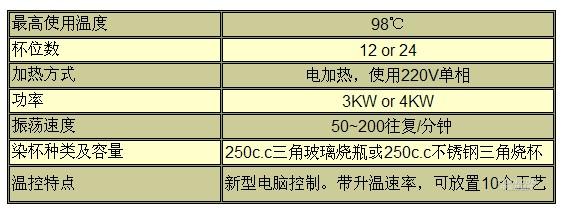 此機是一種用于常溫染色且操作極為方便的常溫型試色機,可在染色過程中輕易的加入中性鹽、堿等助劑,當然也適用于一般浴棉、皂洗、漂白試驗。
