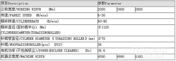 設(shè)置擴幅輥、烘布輥、靜電消除器等選用部件,用于不同織物的起毛。