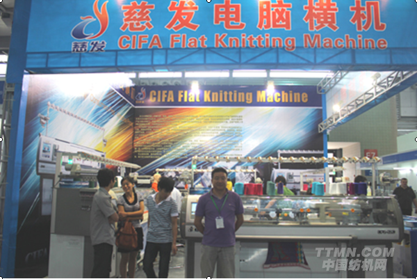 孫總向記者介紹了此次展會慈發展示的CF2-52C型單機頭雙系統起底板電腦橫機,此款機器配備先進的起底板裝置及紗夾紗剪裝置,此兩項裝置突破了目前橫機領域的兩大難題,且達到國際先進水平,這一技術在慈發機上得到了很好的應用,起底板裝置采用活動釋放原理,使封閉的復合針有效實現其掛紗及脫紗功能,而紗夾紗剪裝置與起底板裝置是相輔相成,兩者相互配合工作,才能完全發揮其應有的作用,有效減少了紗線的浪費,提高了生產效率。除此之外,該機型還實現基本的織可穿功能,在目前國內電腦橫機品牌中屈指可數;同時,該機型具備多色嵌花功能,改變了進口品牌在該領域多年來的壟斷地位,真正實現了進口技術國產化。參展期間,該款機器深深吸引了國內外著名電腦橫機品牌廠家的眼球,讓許多來自全世界的客商及同行們駐足不前,大加贊賞。