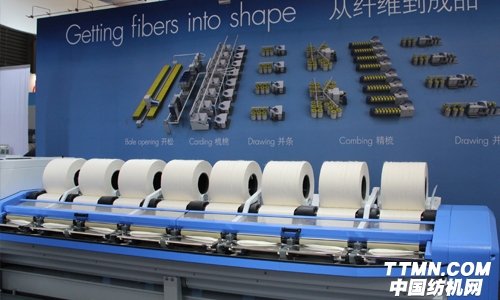 中國國際紡織機(jī)械展覽會暨ITMA亞洲展覽會,作為亞洲乃至全球頂尖的紡機(jī)行業(yè)盛會,特呂茨勒自然不會錯(cuò)過這一展示公司形象及產(chǎn)品的最佳機(jī)會。在今年6月,Trützschler(特呂茨勒)集團(tuán)旗下的紡紗、非織造、人造纖維和針布四大業(yè)務(wù)板塊以及中國子公司特呂茨施勒紡織機(jī)械上海(TTMS)同臺亮相。其中TTMS展出了梳棉機(jī)TC8,從技術(shù)層面上來講,這是目前引領(lǐng)中國市場的機(jī)型。T-Con隔距設(shè)定技術(shù)、MAGNOTOP磁性蓋板裝置等使所有的特呂茨勒梳棉機(jī)(包括參展的TC8)與眾不同。自調(diào)勻整并條機(jī)TD8也在現(xiàn)場展示,此臺并條機(jī)配有獨(dú)立驅(qū)動(dòng)的SERVO CREEL導(dǎo)條架,新型喂棉勻整裝置DISC LEVELLER以及質(zhì)量監(jiān)控系統(tǒng)DISC MONITOR是這臺設(shè)備的亮點(diǎn)。