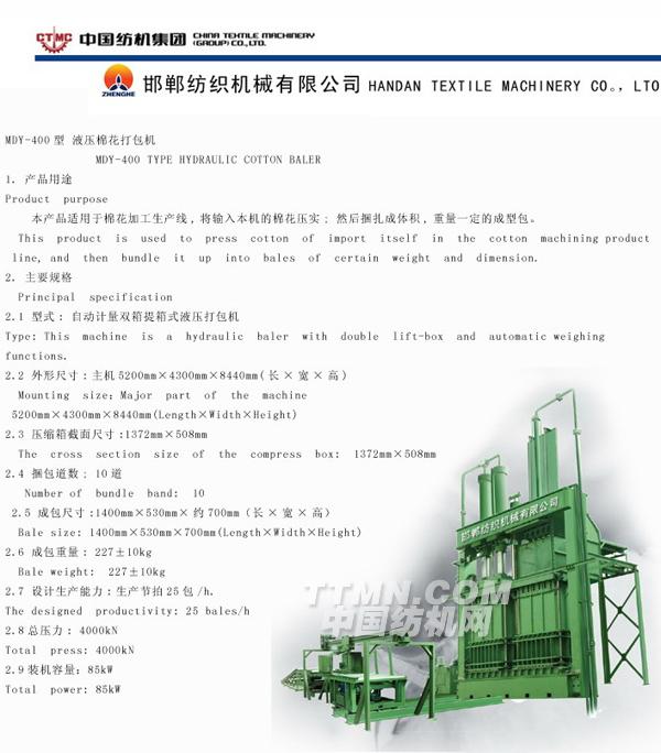 MDY-400型 液壓棉花打包機(jī)