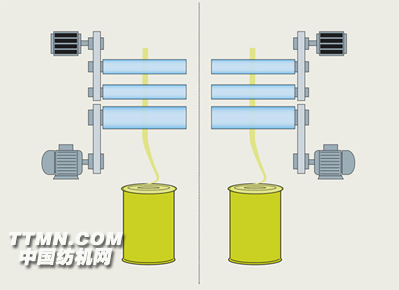 機器兩側(cè)完全獨立運行,確保卓越的棉條質(zhì)量-由于輸出羅拉驅(qū)動不像其它雙眼并條機那樣采用共同的驅(qū)動,因此自調(diào)勻整動作不會相互影響。