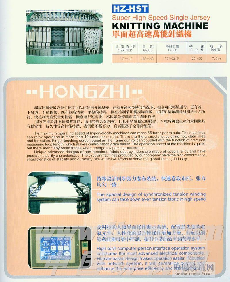 HZ-HST單面超高速萬(wàn)能針織機(jī) -- 宏智(泉州)機(jī)械有限公司