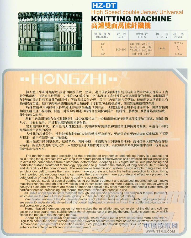 HZ-DT高速雙面萬能針織機 -- 宏智(泉州)機械有限公司