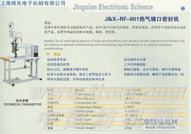J&X-RF-801熱氣縫口密封機 -- 上海精先電子機械有限公司