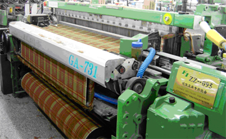 【適用范圍】該機型適應亞麻織物的織造。對織機底座、送經系統等機構進行了特殊設計,已經大量用于市場各類亞麻織物的織造。【產品特點】1、 該機結構緊湊,操作方便,更換織物調整容易;自動化程度高,特別適于亞麻織物的織造等特點。2、 采用微電腦控制系統,具有自動尋緯、故障檢測、自動選緯、斷經自動停車、斷緯自動停車、液晶顯示等功能。3、 開口機構采用積極式下置多臂機。根據設計的織物組織,由預先編制的紋板、紋紙或程序控制綜框的升降運動。亦可配備電子多臂機。4、 引緯機構是雙劍單側供緯,由共軛凸輪驅動的撓性劍帶和夾持式鉗緯器在中央交接緯紗完成引緯。優化設計精密加工的共軛凸輪控制整個引緯過程,可使劍桿頭運動規律更趨合理,確保織機高速運轉時緯紗張力穩定、交接可靠、運行平穩。5、 打緯機構由共軛凸輪驅動短筘座腳分離式筘座,利用慣性打緯,以減小運動的沖擊和能量消耗。與引緯共軛凸輪具有同樣高精度的打緯共軛凸輪,驅動堅固的短筘座,確保在織造高密織物以及厚重織物時的打緯力。6、 積極式送經機構采用復式調節系統,保證送經均勻與送經張力穩定。7、 卷取機構由蝸輪、蝸桿及鏈輪積極連續地傳動卷取輥,實現連續卷取。8、 選緯最多可達8色,可進行不規則選緯。可選擇電子選緯和機械選緯。9、 由4kw的主電動機通過電磁制動離合器傳動織機各個機構。電磁制動離合器同電控系統配合,可準確控制織機的啟動、定位停車、點動等功能。10、 具有紗羅絞邊裝置,可配備折入邊裝置。11、 主要傳動輪系采用油浴潤滑,擺軸軸承采用定期強迫潤滑,無油浴部位采用密封軸承。【技術參數】項目規格選配件筘幅公稱筘幅:190、210 車速190筘幅約312~430rpm210筘幅約300~400rpm 功率整機耗電量<4.6kw 緯密范圍緯密范圍3-68根/CM 經軸盤片直徑800cm 最大卷布直徑550cm 選緯電子