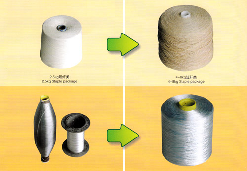 目前市面上的紗線卷裝重量25kg短纖類,08—1.2kg化纖類東星紗線卷裝重量4-8kg短纖類,5—10kg化纖類